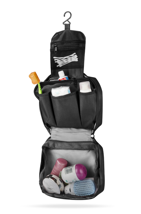 Kosmetyczka MURA jest produktem przydatnym, a wręcz niezbędnym podczas podróży. Dzięki trzem przegródkom i trzem zamykanym na zamek kieszeniom kosmetyczka jest pojemna i umożliwia odpowiednie uporządkowanie wszystkich niezbędnych przedmiotów. Kosmetyczka wyposażona w wieszak, który pozwala na powieszenie jej w toalecie. Kosmetyczka wykonana jest z poliestru 300D.