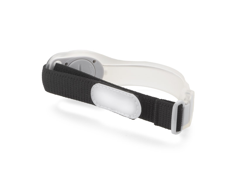 Opaska BLINK to praktyczny gadżet reklamowy wyposażony w latarkę LED, która oferuje dwa tryby świecenia: ciągłe i migające. Wykonana z elastycznej, szerokiej gumy z regulacją na rzep, zapewnia wygodne dopasowanie do różnych rozmiarów ramienia. Zawiera elementy o właściwościach odbijających światło oraz zaczep.
